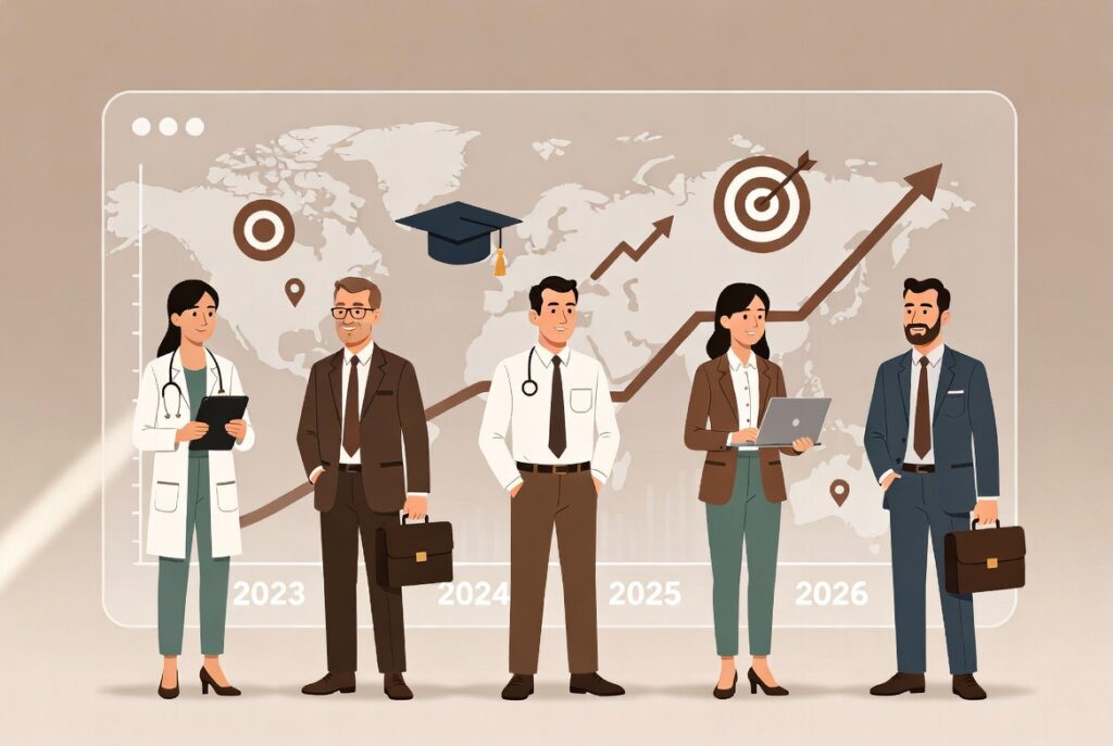 La enfermería en particular vive un momento especial: países como Canadá, España y Alemania están reclutando activamente enfermeras latinoamericanas con inglés o el idioma local. Una enfermera peruana o colombiana que emigra puede multiplicar su ingreso entre tres y cinco veces.